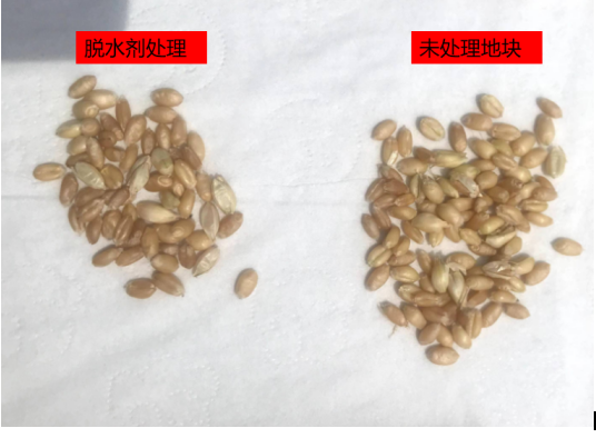 (4)綜上所屬,脫水劑產(chǎn)品在小麥的大面積使用是可以推廣的,產(chǎn)量和品質(zhì)均為影響,水分的確降低到12.7%,收割時(shí)間至少提前3天。給農(nóng)業(yè)生產(chǎn)帶來(lái)極大的好處,可以達(dá)到省工、省時(shí)、省力、高效、環(huán)保的作用。
